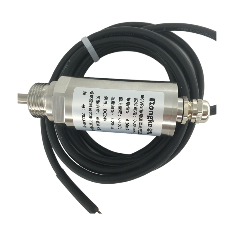 振动及温度变送器是一种小型一体化、独立三线制(或四线)、探头式变送器。它的两路4~20mA输出信号分别与被测物体振动速度的真有效值(烈度)和测量点温度变化成正比。该变送器安装简便,适用于对各类大、中型旋转机械和运动设备(如风机、水泵、减速机、轴承座、滚动磨擦体等),进行振动安全和温升安全的在线测量。该变送器可与DCS、PLC等计算机测控系统连接。