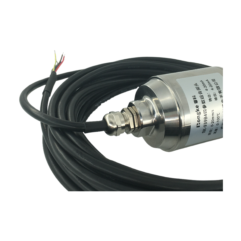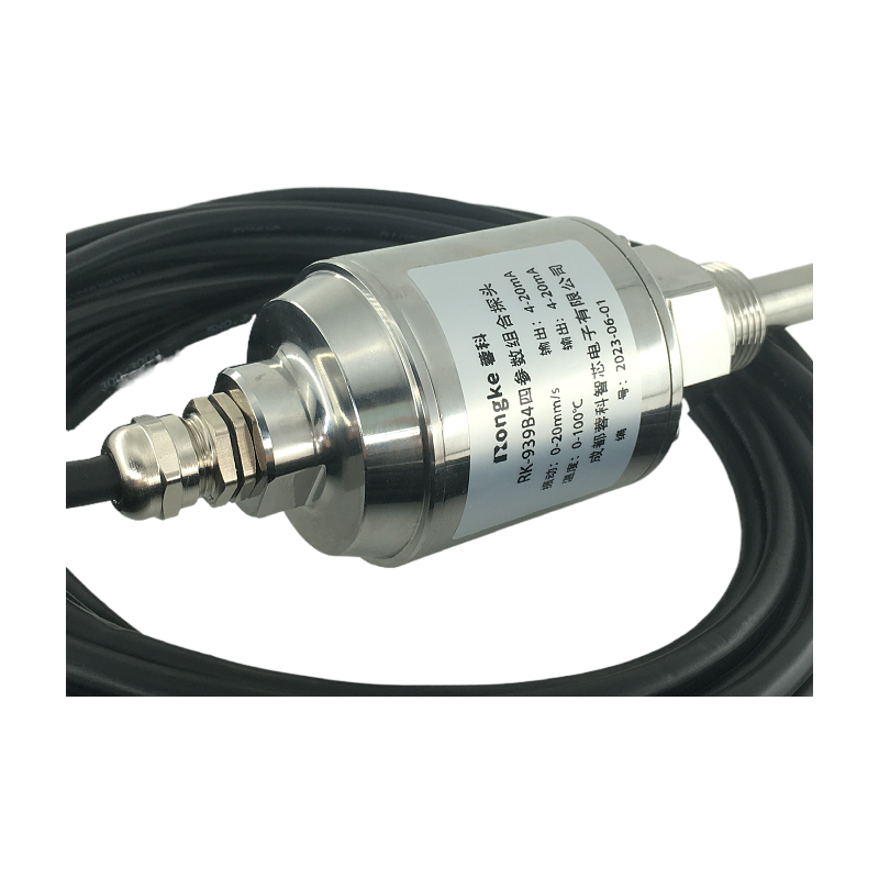 KR-939SB4型一体化四参数组合探头,是939系列冷却塔风机安全监控系统中一种非总线结构的通用型组合变送器。它能够同时监测风机减速机X、Y、Z三个正交方向的振动和减速箱内部润滑油温度。