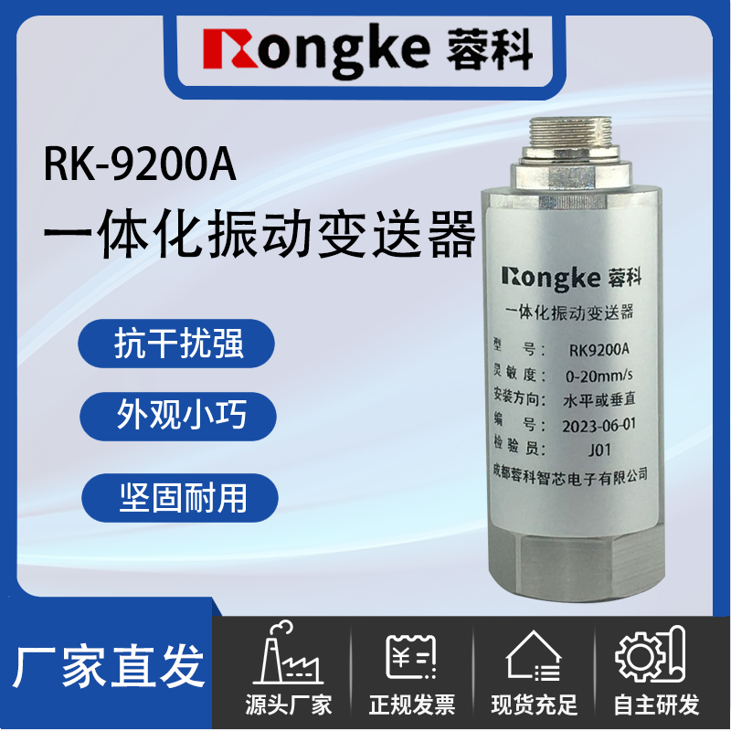 一体化振动变送器:将磁电式振动传感器、精密测量电路集成在一起,构成高精度振动测量系统,该变送器可直接连接DCS、PLC或其它设备,是测量风机、电动机、水泵等工厂设备振动的理想选择。