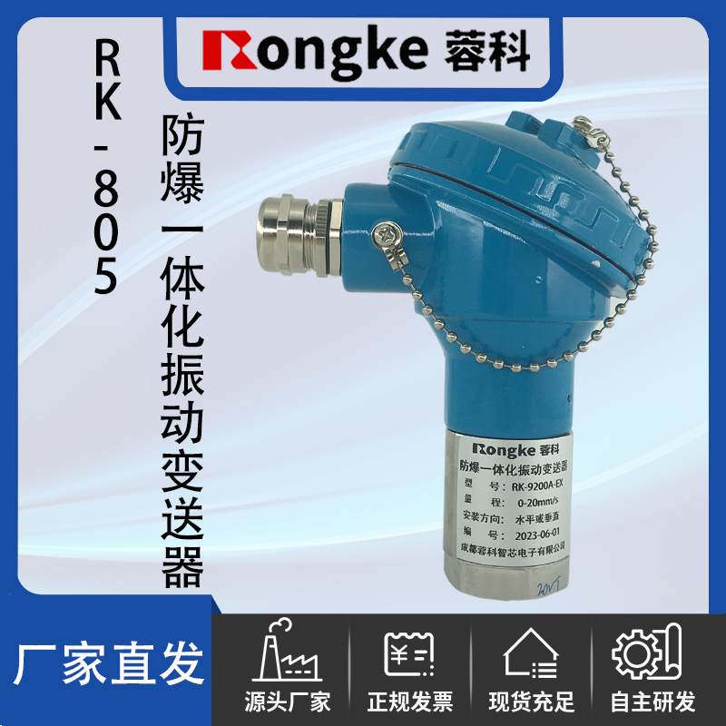 两线制防爆振动变送器/蓉科RK将振动速度传感器、精密测量电路集成在一起,构成高精度振动测量系统,实现了传统的“传感器+监测仪表模式的振动测量系统的功能,该变送器可直接连接DCS、PLC或其它设备,是风机、电动机、水泵等工厂设备振动测量的理想选择。