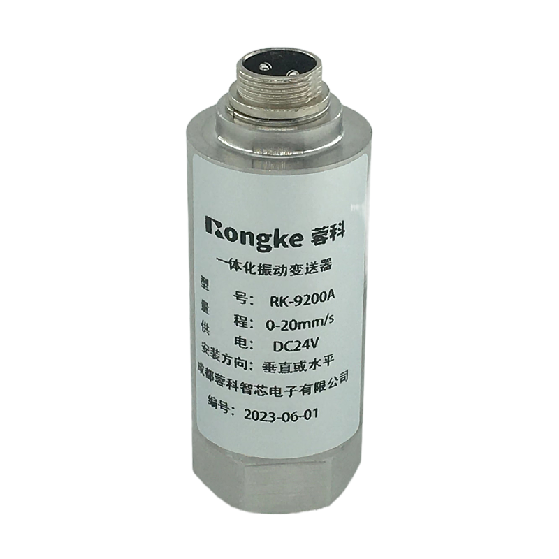 蓉科RK/一体化振动变送器:将磁电式振动传感器、精密测量电路集成在一起,构成高精度振动测量系统,该变送器可直接连接DCS、PLC或其它设备,是测量风机、电动机、水泵等工厂设备振动的理想选择。