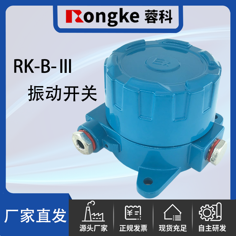 RK-B-III电子振动开关(以下简称振动开关)是根据GB3836.1-2000《防爆性气体环境用电气设备 第1部分 通用要求》、GB3836.2-2000《爆炸性气体环境用电气设备 第2部分 隔爆型“d"》的规定制成隔爆结构,其防爆标志为Ex dⅡCT6,适用于工厂存在或可能存在ⅡA、ⅡB、ⅡC类,T1~T6组可燃性气体、蒸气与空气混合形成的爆炸危险1区、2区场所