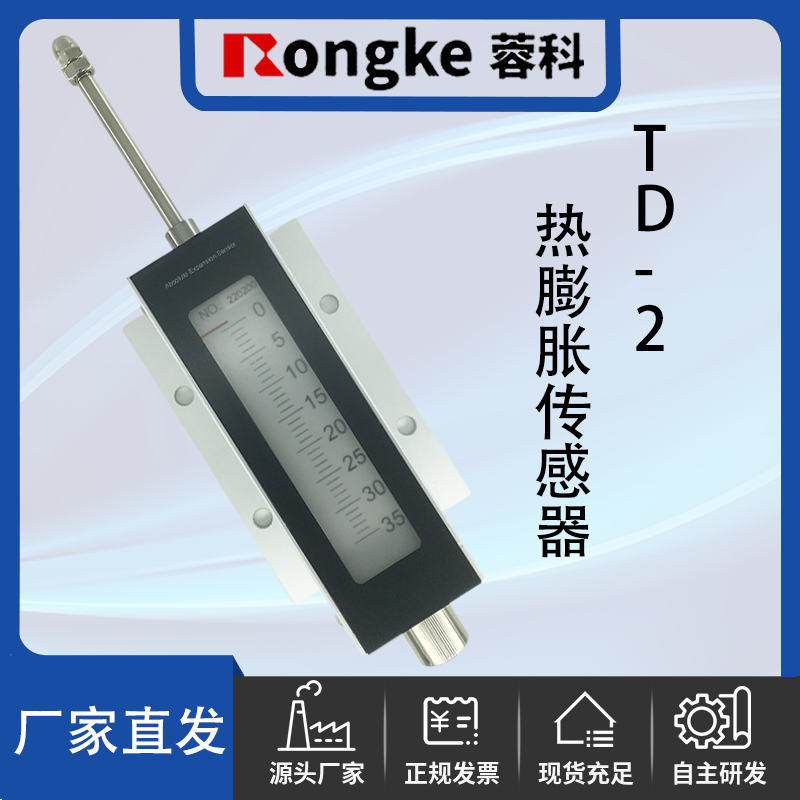 TD-2热膨胀传感器 主要用于测量汽轮机汽缸膨胀位移量,与HCW-R热膨胀监测仪相配合即可完成热膨胀位移量的远传指示、报警、恒流输出等功能。就地指示视野大,远传指示为数字显示,清晰直观。采用中频差动变压器式位移传感器作为传感元件,是一种高可靠的 LVDT 位移传感器,抗干扰能力强,线性好,结构简单,不易损坏,能长期连续使用。