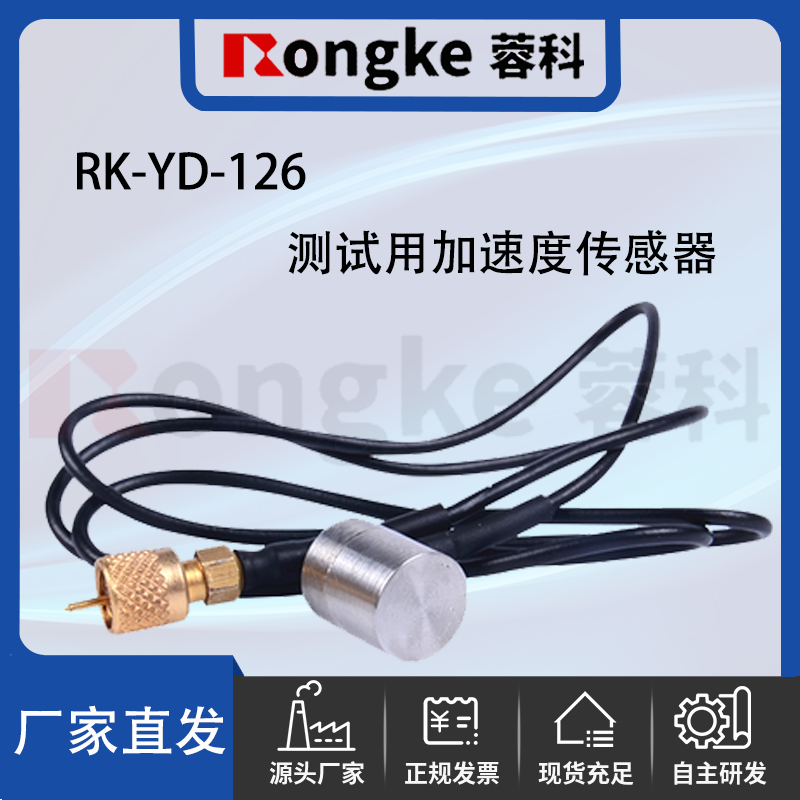RK--YD-126测试用加速度传感器:特点:●体积小、重量轻●大冲击测量●整体连线输出2pC/g,1-15kHz,±1万g...