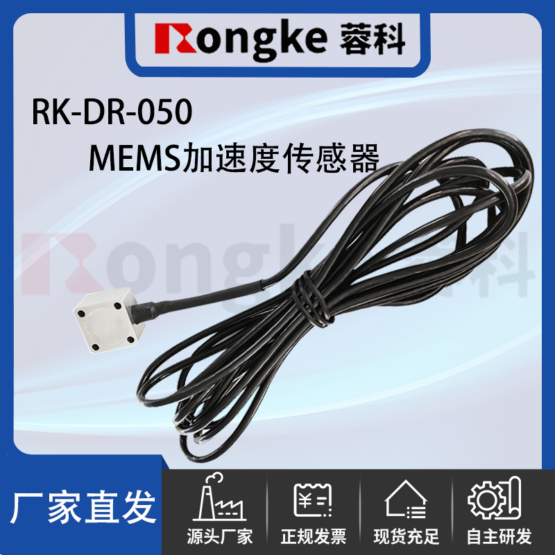 RK-DR-050MEMS加速度传感器:特点:●频响低至零频●单电源供电,电压输出,使用方便38 mV/g±10% , ±50 g...