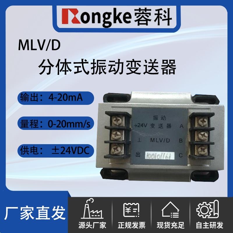 RK/MLV/D分体式振动变送器:MLV/D分体式振动变送器同MLV系列振动速度传感器配套使用。 监测旋转机械的绝对振动,如轴瓦、机壳、机架振动等,并输出振动的速度(烈度)、位移值。